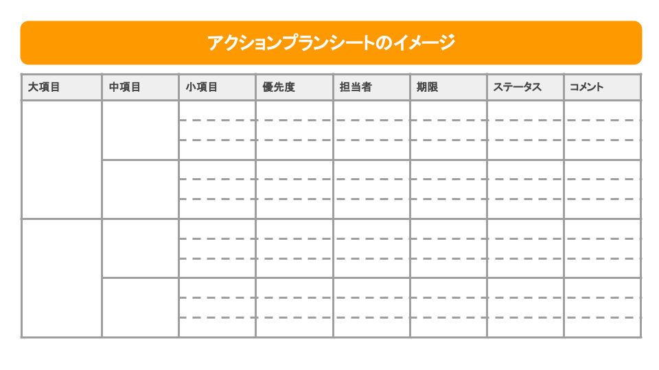 PMIにおけるアクションプランは、M&Aの効果を最大化するために行う具体的な計画のことを一般的に指します。100日プランで検討したように、短期的な課題を解決するリストではなく、中長期的なビジョンを達成から逆算した実行リストになっている必要があります。